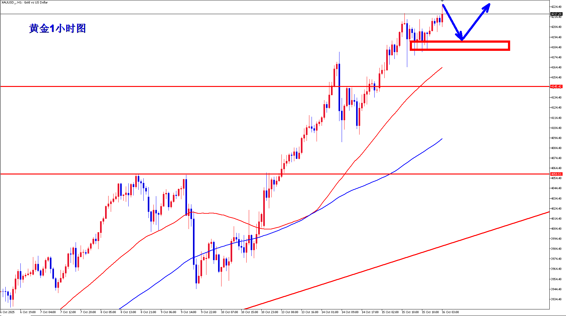 黄金1小时现在均线还是多头向上的金叉多头排列发散,黄金多头还有上涨力度,黄金现在回落就是继续多,黄金昨晚二次回踩4180附近之后就直接继续向上,昨晚我们提示守住4180,那么黄金就还是继续向上强势,今天早盘守住4108还是继续多头向上的行情,黄金4180-4190区域黄金多头承接力比较强,黄金早盘回落此区域就是继续多。