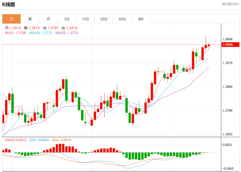 10月16日,周四欧市盘中,美元/加元连续第二天回吐涨幅。该货币对正在从六个月高点1.4080回落,并测试前高点1.4025区域的支撑位,到目前为止,该区域保持多头并维持看涨结构完好无损。