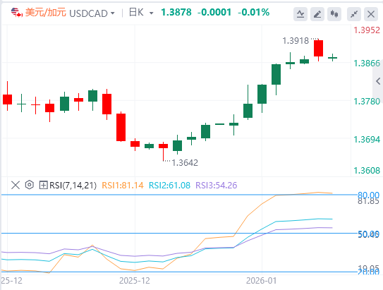 美元/加元位于50日简单移动平均线(SMA)下方,SMA正向下倾斜并保持看跌倾向。该移动平均线位于1.3890附近,反弹仍受限于此。移动平均收敛背离线(MACD)位于信号线之上,略高于零,而正直方图开始收缩,暗示上行动能有所缓和。相对强弱指数(RSI)显示59,位于中线之上,强化了轻微看涨的基调,但未达到超买。