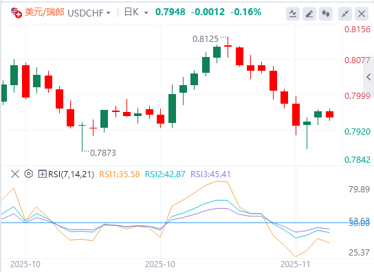 11月18日,美元/瑞郎回落至上一交易日的上涨,周二亚洲时段交易约0.7950。瑞士法郎兑美元(USD)升值,此前瑞士达成协议,将美国关税降至15%,较特朗普政府时期的39%大幅下降。这一发展为一个曾被征收最高关税的国家带来了急需的缓解。