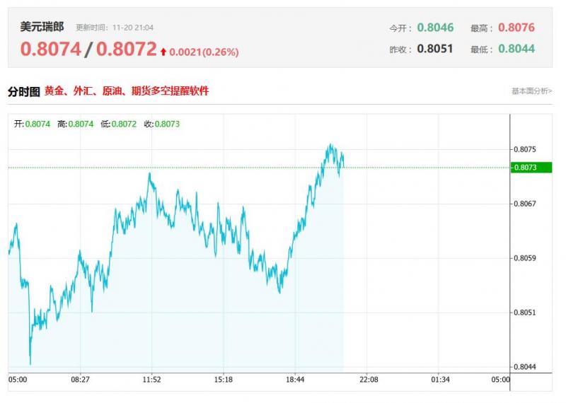 2025年11月22日06时00分瑞士法郎/人民币汇率最新报价