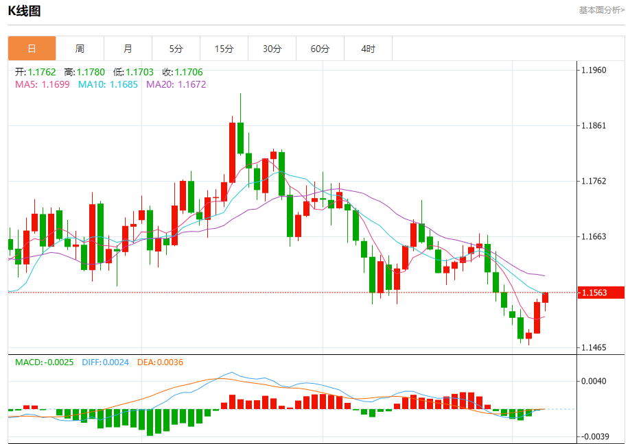 随着美元走弱,欧元/美元周四收复部分失地,从日低点0.45反弹后上涨1.1486%。美国疲软的就业数据加剧了人们对美联储在12月会议上降息的猜测。