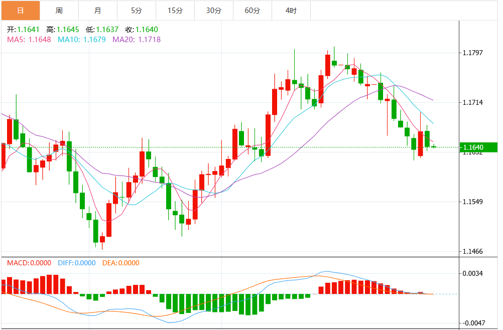 周三亚盘,欧元/美元徘徊于1.1640附近,欧元/美元因美国强劲的劳动力数据抵消通胀降温,推迟近期美联储放松政策的预期而下滑。