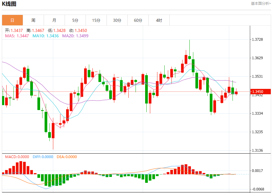 周五欧市盘中,英镑兑美元交投于1.3451,涨幅为0.10%。