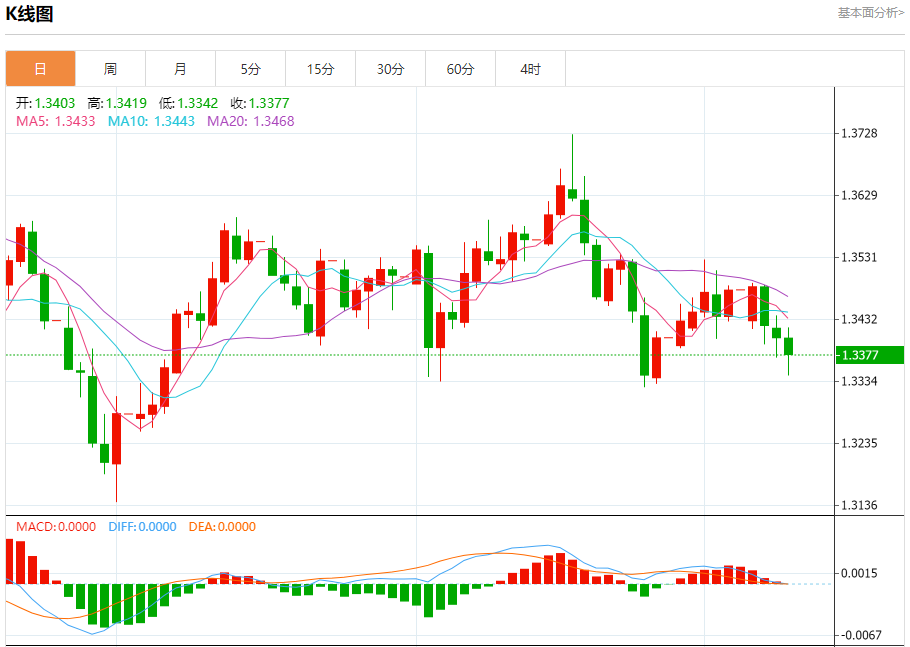 10月9日,周四欧市盘中,英镑/美元延续了第三个交易日的连跌势头。随着美元指数(DXY)在小幅修正后反弹,英镑/美元货币对跌至1.3365附近。