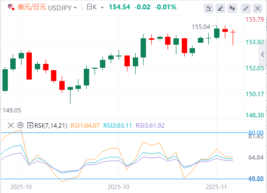 11月17日,美元/日元徘徊在154.54附近。日本GDP数据抑制了对日本银行加息的押注。上周,日元升至九个月高点155.044美元。对日本银行12月加息的不确定性上升,与美联储降息预期的消退发生冲突。