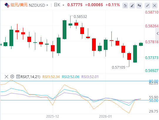 1月13日,纽元/美元连续第二个交易日上涨,周二亚市盘中徘徊在0.5780附近。根据新西兰经济研究院(NZIER)季度商业舆论调查,纽元(NZD)在2025年第四季度(Q4)国内商业信心指数(QUARTER/QUARTER)上涨至48%,为自2014年3月以来的最高水平,高于第三季度的18%,该货币对的上涨。