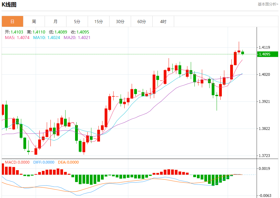 今日周四,澳元兑美元报0.6514,涨幅0.14%;美元兑加元报1.4098,跌幅0.08%;美元兑瑞郎报0.8082,跌幅0.22%。