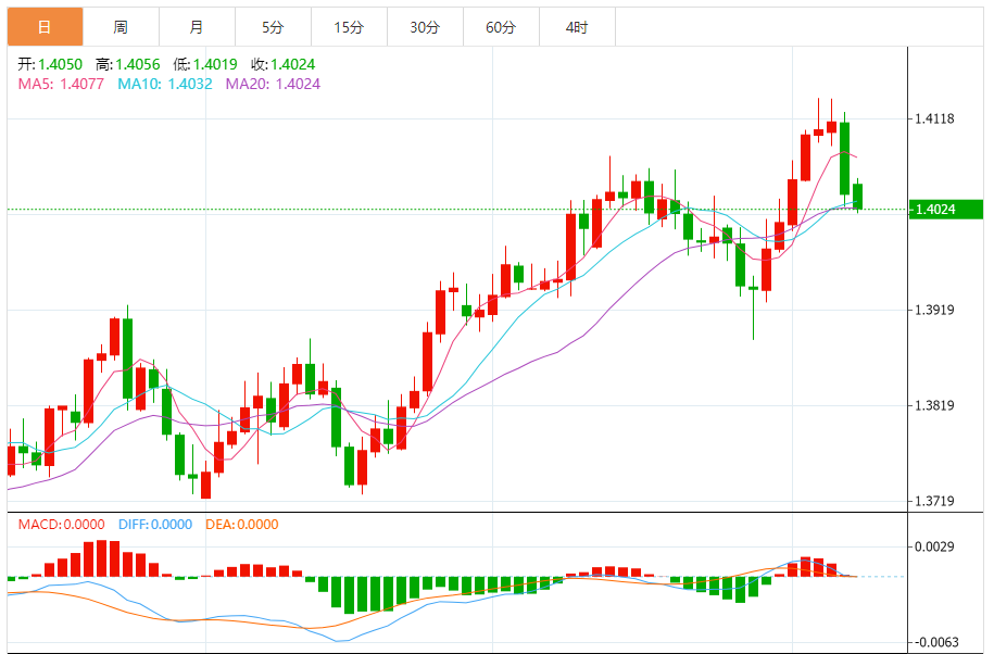 11月10日,周一亚洲交易时段,美元/加元下跌0.12%至1.4030附近。在周五公布乐观的加拿大10月份劳动力市场数据后,加元(CAD)的表现普遍优于其他货币,因此加元货币对面临抛售压力。