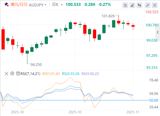 《日经亚洲》周一晚间报道,日本首相高市早苗本周将启动税改谈判,旨在减税以刺激投资和消费。这加剧了对政府长期财政健康的担忧。此外,日本周一第三季度GDP疲软,可能进一步给日本央行推迟加息施加压力。这可能会抑制日元多头进行激进押注,帮助限制澳元兑日元交叉的更深跌幅。