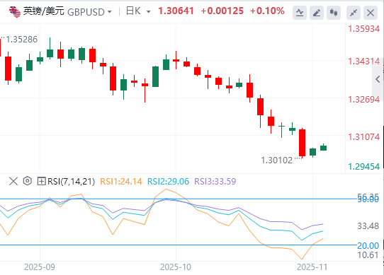 周四欧洲交易时段,英镑兑美元(USD)小幅走高,约为1.1306。美国10月ADP就业变化和ISM服务业采购经理人指数(PMI)数据发布后,美元涨势暂停,英镑/美元货币对小幅上涨。