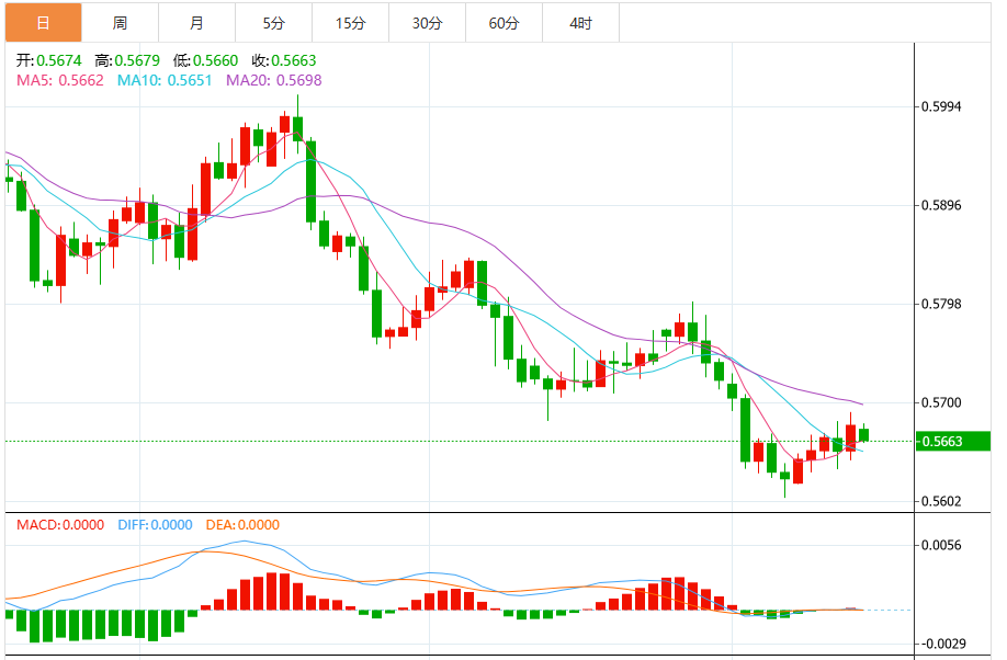 周一亚盘,纽元/美元货币对在新的一周开局平淡,周一亚洲时段在0.5670-0.5675区域窄幅震荡。 然而,现货价格仍接近一周半高点,约在0.5700附近,周五触及,受多重信号影响。