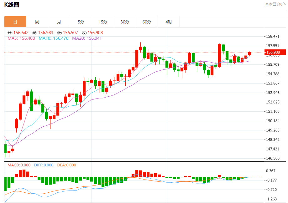 周三盘中,美元/日元报156.583,涨幅0.14%。