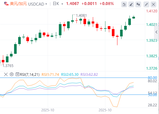 11月4日,美元/加元连续第四个交易日延续涨幅,周二欧洲时段交投于1.4060附近。日线图的技术分析表明普遍存在看涨倾向,该货币对在上升通道形态内向上移动。