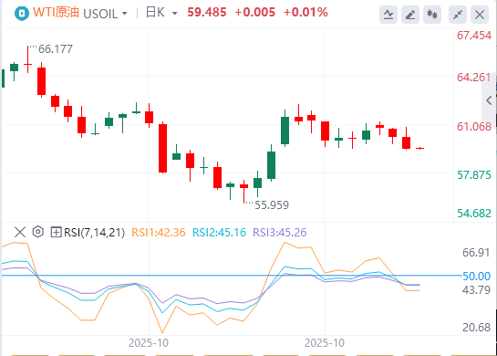 周四亚盘,原油交投59.48附近。周三,西德克萨斯中质原油(WTI)连续第三天延续跌势,跌破每桶60.00美元的关键关口,触及一周低点,此前美国能源信息署(EIA)的最新报告显示库存增加大于预期。
