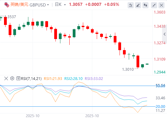 英镑:截至发稿,英镑/美元徘徊在1.3057附近。英镑/美元在周三与短期技术支撑位进行斗争,找到了一些呼吸空间,刚好在1.3000之上。经过几周单边下跌后,Cable交易者迎来了微弱的反弹。英国央行(BoE)及其最新的利率决策在周四显得尤为重要,而由于美国政府停摆,官方经济数据来源不明,波动的私人数据集在美国数据流中占据了主导地位。技术面上,如果英镑/美元成功收于1.3015水平下方,它将走向下一个支撑位,即位于1.2885–1.2900区间。