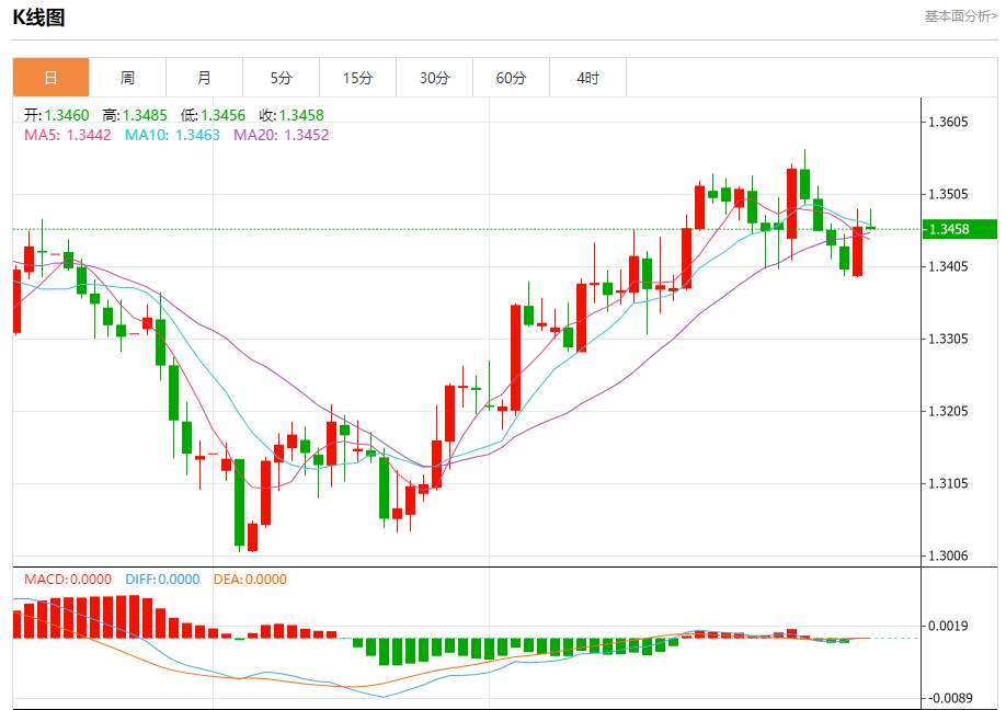 英镑/美元:截止北京时间21:20,英镑/美元下跌,现报1.3458,跌幅0.03%。纽市盘前,GBPUSD在最近一个交易日上涨,达到当前的阻力1.3475,伴随着价格试图超过EMA50的负压力,宣布其在近期基础上全面复苏,在短期基础上主要看涨趋势占主导地位,另一方面,我们注意到相对强度指标在达到超买水平后出现了负面信号,与价格走势相比有所夸大,这可能会阻碍其在未来一段时间内扩大涨幅。