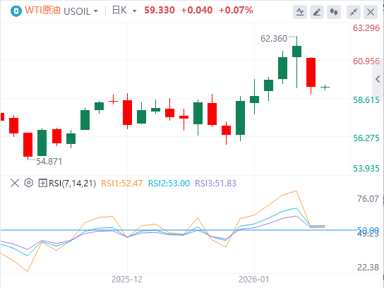 周五亚盘,原油交投59.33附近。油价周四大幅下跌超3%,结束了此前连续五个交易日的上涨,因美国总统特朗普关于伊朗局势的缓和言论,叠加美国原油库存大幅增加的数据打压。