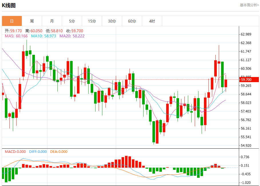 原油市场:截止北京时间21:20,美油上涨,现报59.700,涨幅1.02%。纽市盘前,(原油)价格在最后一个交易日的水平上飙升,因为它依赖于EMA50的支撑,随着相对强度指标出现积极信号,在周围看涨势头形成积极背离之后,在短期主要看涨趋势占主导地位的情况下,获得了看涨势头。