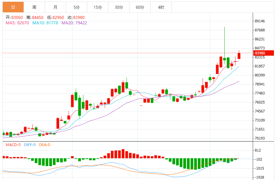 金价前期向下测试3120.0附近低位后,行情重心逐步上移,并上穿长期均线MA60,形成多头趋势。虽然短期有所回落,但不影响整体上行趋势。布林带下轨短期和均线MA60共同对价格在3362.4附近形成支撑,同时CCI指标在超卖区间附近拐头向上,预示行情有机会上行。日内思路为逢低做多为主。