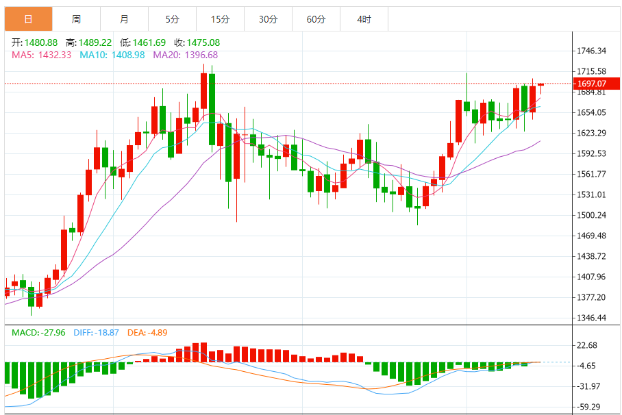 日内交易策略:多单:3362.4附近尝试做多,止损3356.0,目标3451.0、3499.8附近。
