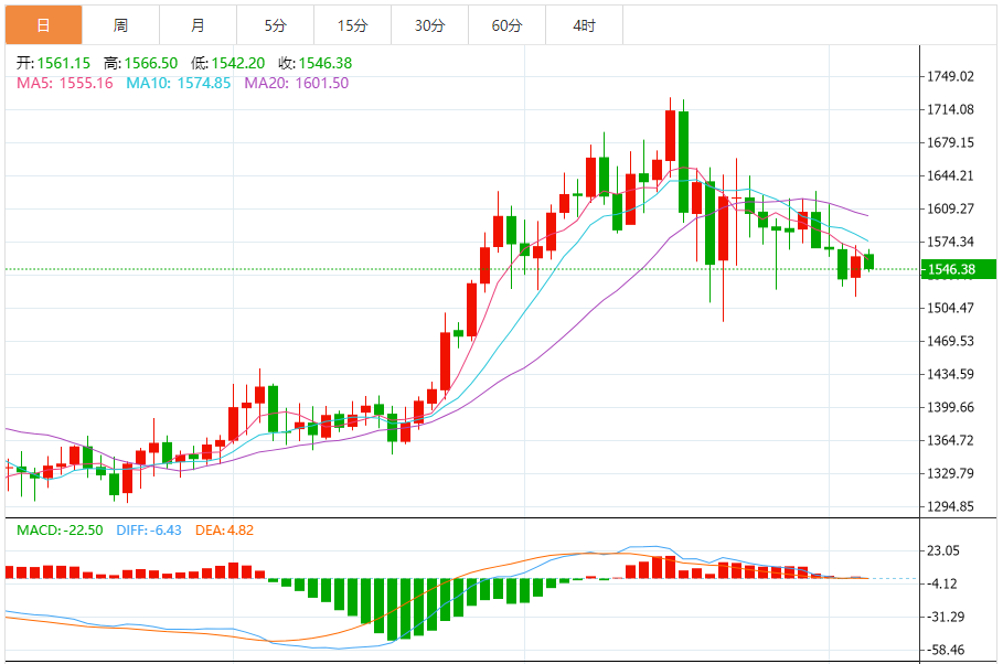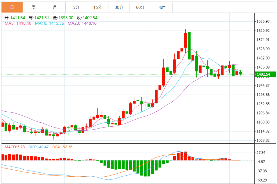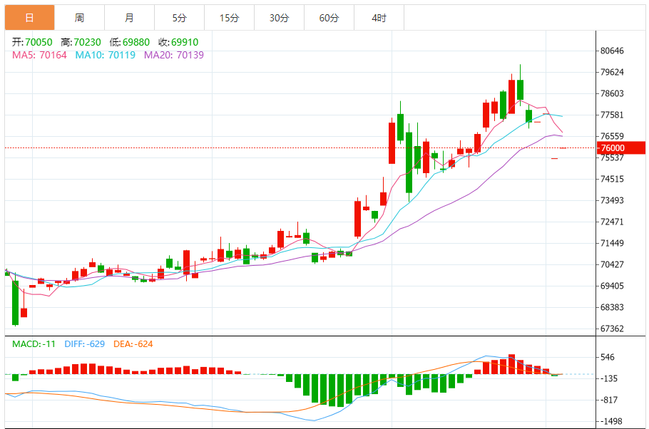 伦敦银现日线级别形成“双底”形态,颈线位48.30美元/盎司今日险些突破,下方支撑位47.70美元/盎司(今日低点),若失守将回踩47美元/盎司关口。