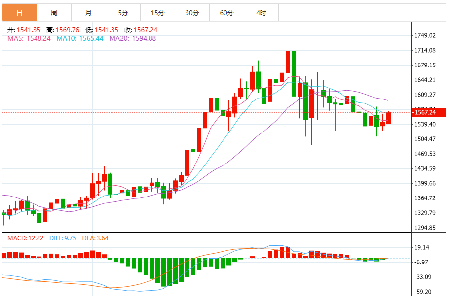 今日最新铂金行情:1566.60