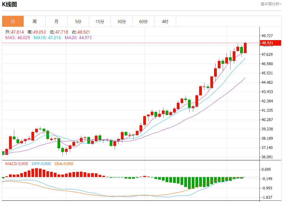 周三(10月8日),现货白银目前位于48.654美元/盎司附近,涨幅为1.78%。