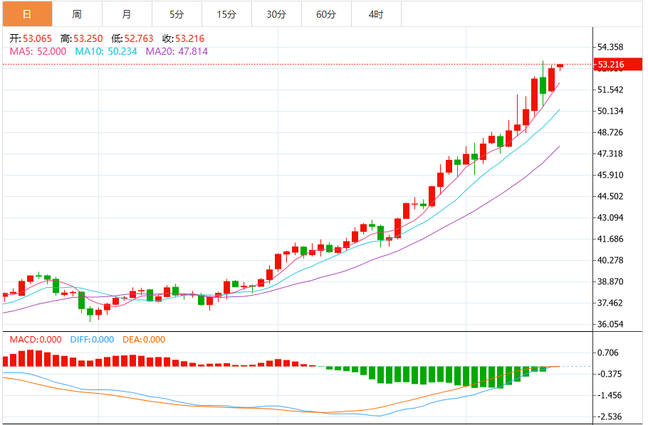 周一盘中,现货白银报52.240,涨幅0.71%。