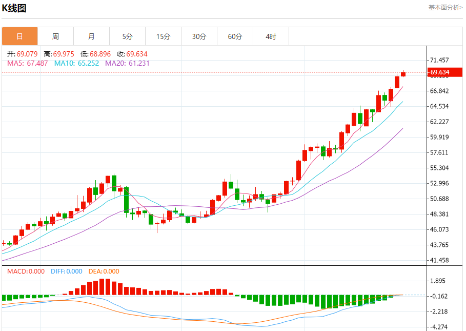 周二亚盘,银价(XAG/USD)在周一延续其看涨势头,徘徊于69.47附近, 经过几周的稳定上涨后,白银受益于强劲的跟进买盘,宏观经济和地缘政治背景对避险资产仍然有利。