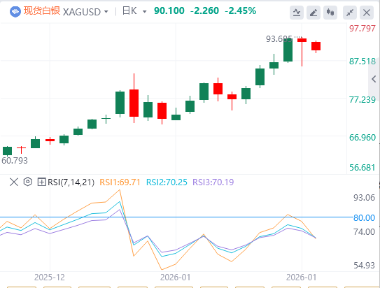 1月16日,白银价格在周五亚洲交易时段下跌超过2%,接近90.40美元。在周三创下历史新高接近93.90美元后,白银难以延续其反弹。