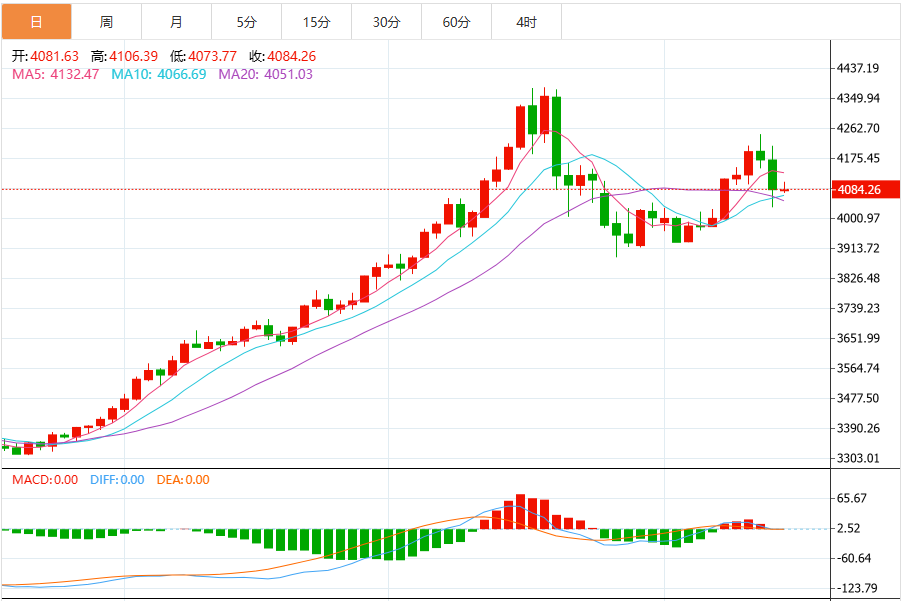 下行方面,从3310美元/盎司低点到4380美元/盎司高点升势的38.2%回撤位3975美元/盎司提供初步支撑,而50%回撤位3845美元/盎司则在其下方。若金价守住38.2%回撤位,则看涨趋势将保持不变;若收盘价跌破该位置,则可能将回调阶段延续向3845美元/盎司。此外,上升的50日均线(接近3938.26美元/盎司)也构成趋势支撑。若金价持续高于短期均线,则将增强上涨动能,并保持进一步上涨的空间。