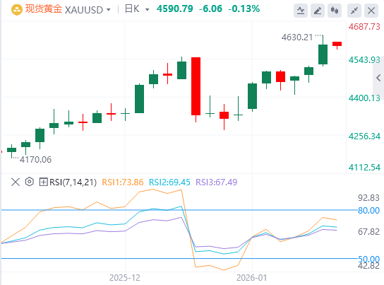 1月13日,周二亚洲早盘,黄金跳升至接近4600美元。黄金在上一交易日创下4630美元的新历史高点后,因不确定性和地缘政治风险而回落,继续上涨。美国消费者价格指数(CPI)12月通胀数据将在周二晚些时候成为焦点。
