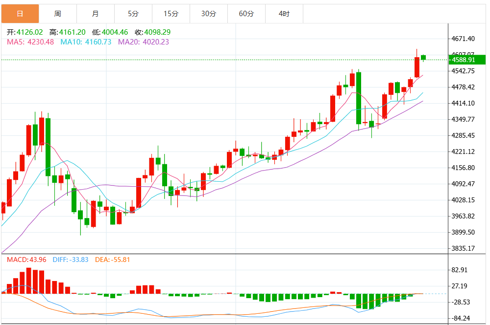 如果金价维持在4600美元/盎司上方,首个阻力位将是4630美元/盎司的历史高点,其次是4650美元/盎司。突破4650美元/盎司后,目标位将为4700美元/盎司。、