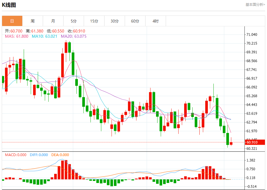 周五(10月3日),美原油价格交投于61.070美元/桶附近,涨幅为0.99%。