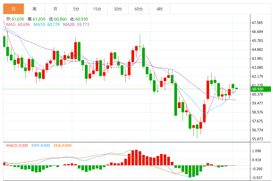 12月交割的WTI原油期货价格上涨0.11%,结算价为每桶61.05美元;
