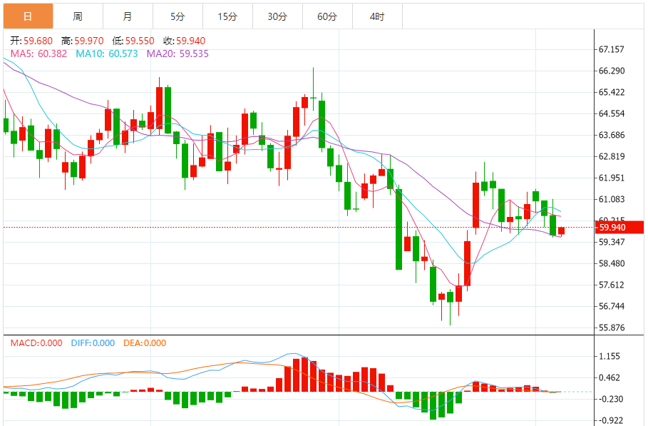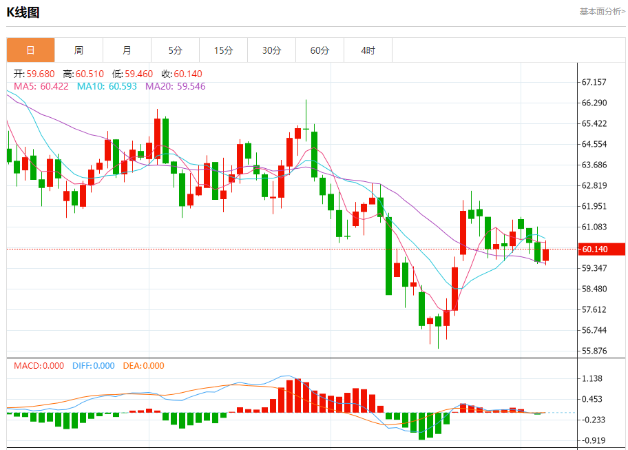 周四亚盘,美原油交投于59.63美元/桶附近,油价周三创下两周以来最低收盘价。市场对全球石油供应过剩的担忧持续发酵,成为压制油价的主要因素。本交易日需要继续关注美联储官员的讲话,留意美国10月挑战者企业裁员人数和英国央行利率决议。