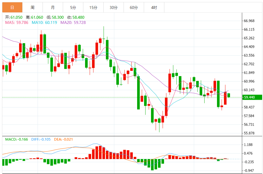 WTI吸引了一些卖家,因为有迹象表明俄罗斯黑海主要港口新罗西斯克的活动已恢复。交易员等待周二晚些时候美国石油协会(API)每周原油库存报告的发布。截至目前,WTI原油报价59.32美元,Brent原油报价63.46美元。